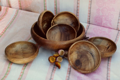 Composition of bowls; Walnut tree; 6 piese 168 x 68 mm; 336 x 136 mm