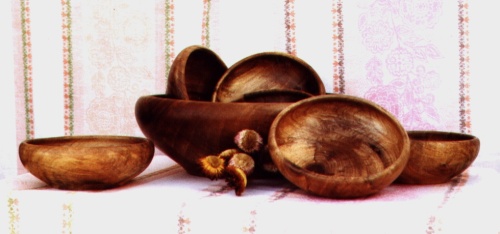 Composition of bowls; Walnut tree; 6 piese 168 x 68 mm; 336 x 136 mm